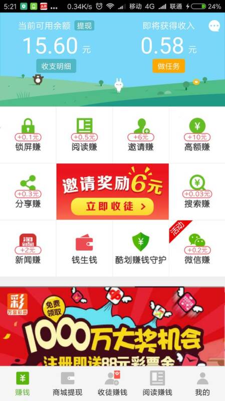 手机下载APP《酷划锁屏》分分秒秒都在赚钱