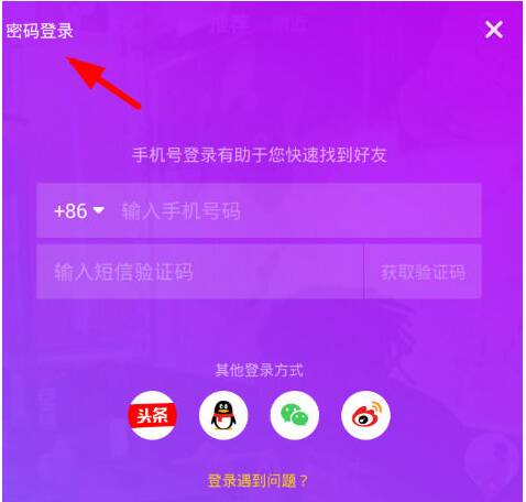 1、要找回抖音的帐号密码,先点击下面的"我"按钮进入登录账号页面,然后在页面左上角选择"密码登录"的方法。